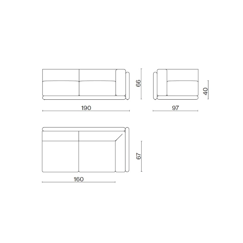 Cassina CORNARO 2-Sitzer Sofa-Endelement