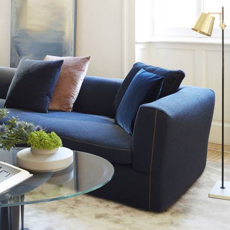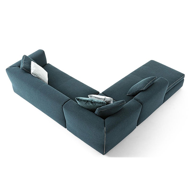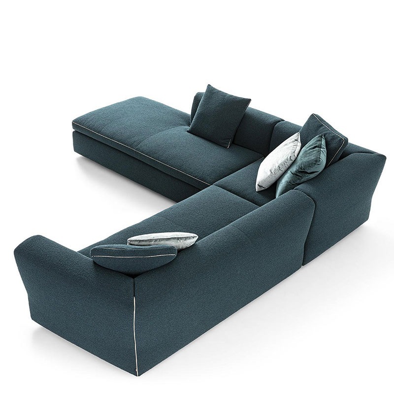Polster aus Polyurethanschaum mit unterschiedlicher Dichte; Füllung Polyesterfaserwatte geharzt mit Samtbeschichtung und Gänsedaunen in getrennten Sektoren