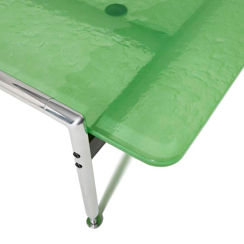 Tischplatte aus heißverformtem gefärbtem Glas, wellenförmig